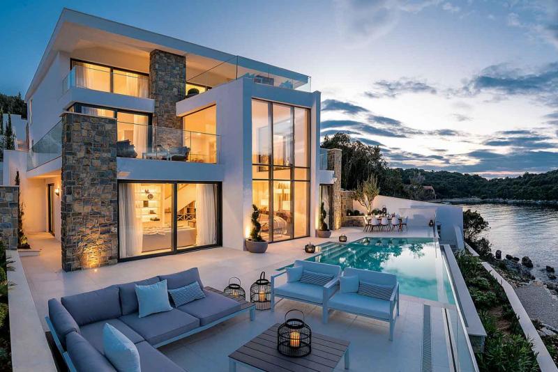 Designed with respect to the traditional local architecture and built from the same stone as the US Whitehouse – Villa Boho blends with the natural rock formations of the waterfront. Luxury Villa Boho is located on a 750 m² estate and the villa itself has an area of 320 m². Villa Boho has four tastefully decorated rooms with own bathrooms, all in boho-chic style with a blend of contemporary design and vintage. Some of the rooms have a terrace or a balcony and most of them have a stunning sea view. Living areas are located on the ground floor where is a spacious living room overlooking the main terrace from where your view is lost into the sea. The ground floor, which also contains toilet, is connected with a lavishly decorated kitchen equipped with the best home appliances and hand-made kitchen tables.